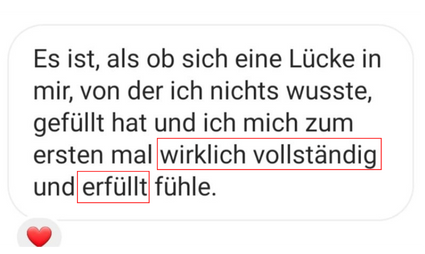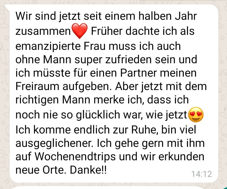 Liebe bedeutet Glück und Zufriedenheit. Einmal den Richtigen gefunden, bedeutet das langfristig Sicherheit und Geborgenheit. Mein Partner (selbst Bindungsängstler) hat mir durch seine Geschichten gezeigt, dass Menschen zu Beziehungen zu verhelfen das ist, was mir liegt - und woran ich richtig Spaß habe.