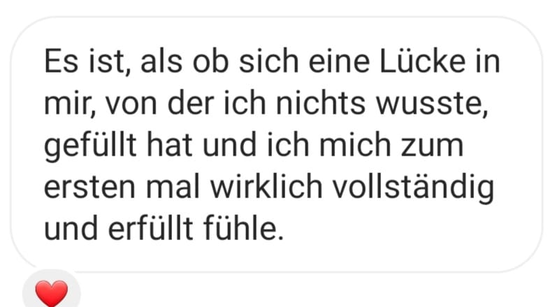 Heute habe ich meinen damaligen Werdegang zur Architektin beendet, weil ich lieber dabei zu sehe, wie Menschen mit meiner Hilfe zueinander finden, als Häuser zu planen. Ich liebe den Moment, wenn es in meinen Kundinnen "Klick" macht und sie plötzlich realisieren, dass auch sie schon alles in sich haben, um an ihr Ziel zu gelangen.