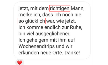 Solltest du es hiermit nicht schaffen, einen passenden Mann zu finden, schreibe mir eine Mail an xxxxxxx und ich erstatte dir jeden einzelnen Cent, das versichere ich dir.