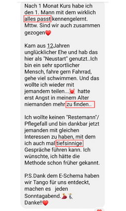 Deshalb habe ich das E-Schema entwickelt, welches in 11 simplen Schritten genau diesen Modus in seinem Unterbewusstsein triggert, echte Verliebtheitsgefühle erzeugt und dir einen unfairen Vorteil erschafft.