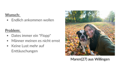 Solltest du es hiermit nicht schaffen, einen passenden Mann zu finden, schreibe mir eine Mail an xxxxxxx und ich erstatte dir jeden einzelnen Cent, das versichere ich dir.